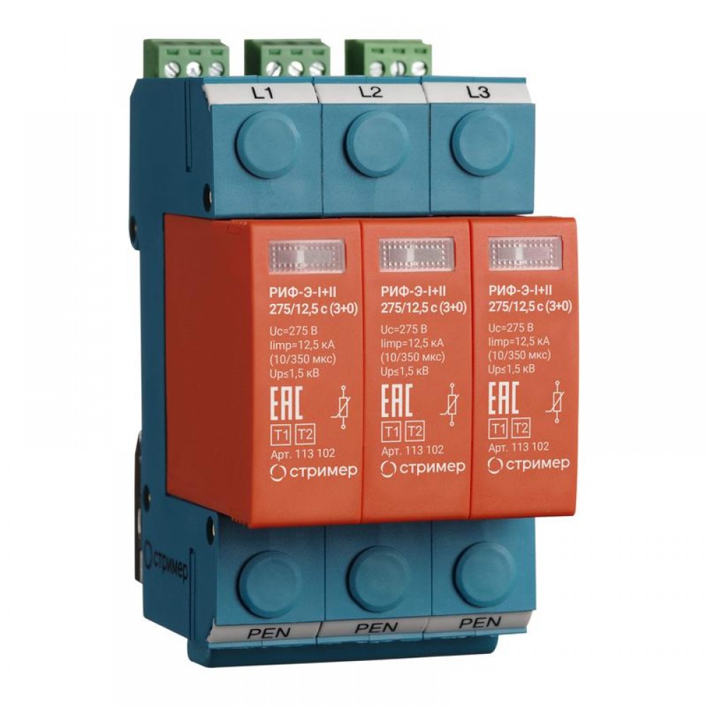 Устройство защиты от импульсных перенапряжений РИФ-Э-I+II 275/12.5 c (3+0) Стример 113102