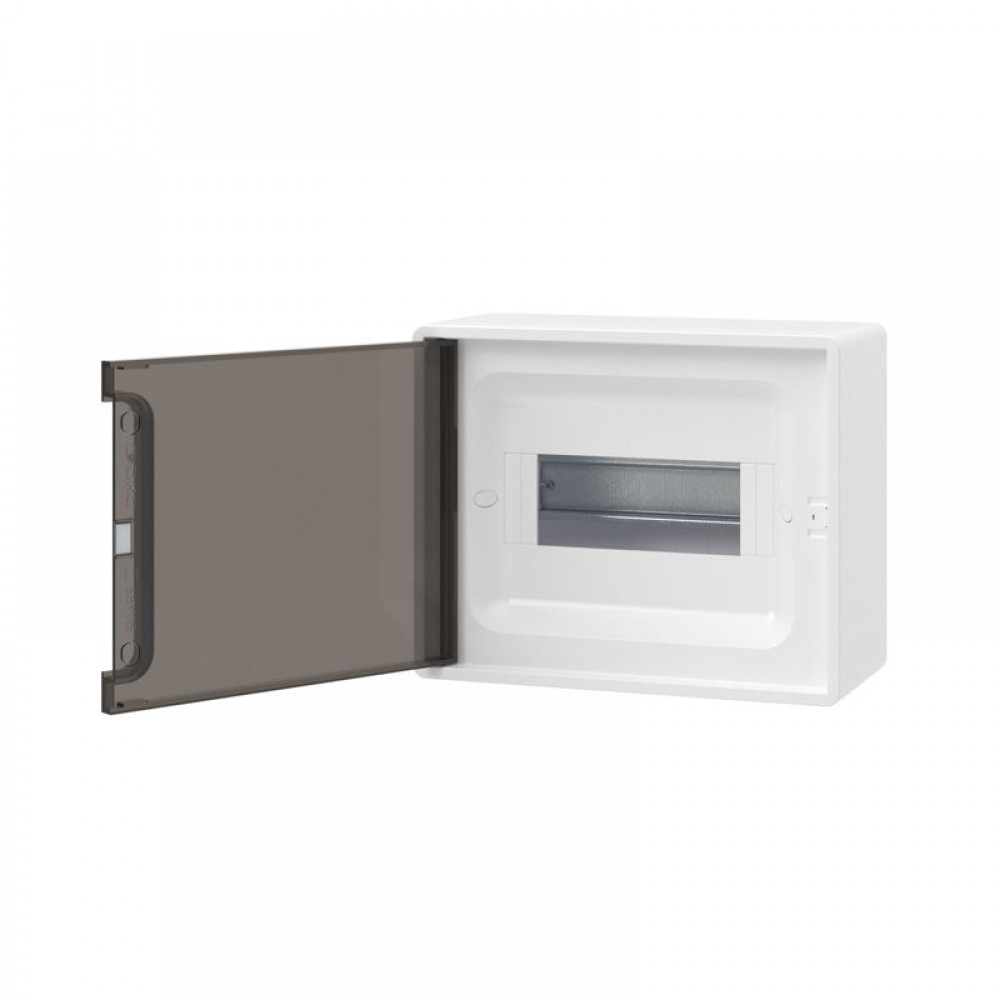 Щиток 8 мод. настенный FRAME с тонированной дверцей с 2 шинами PEN на 6 и 8 отв. бел. DKC F08W1WD