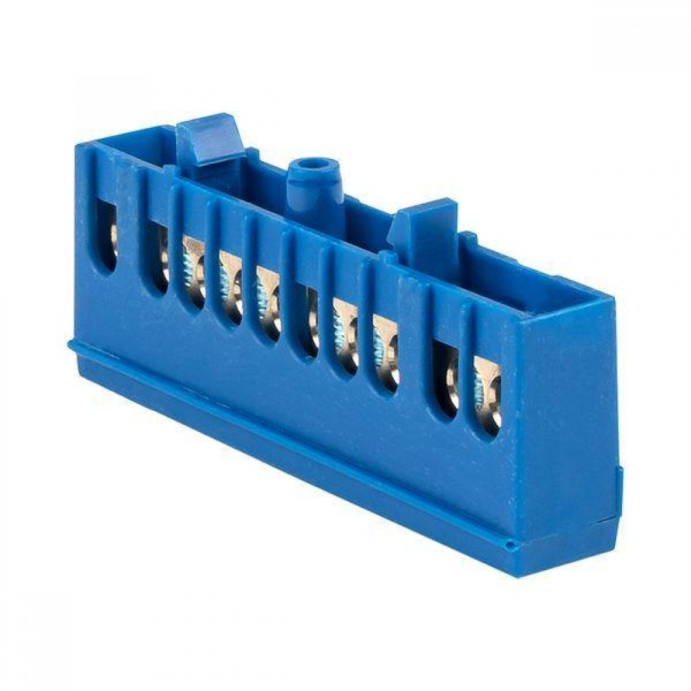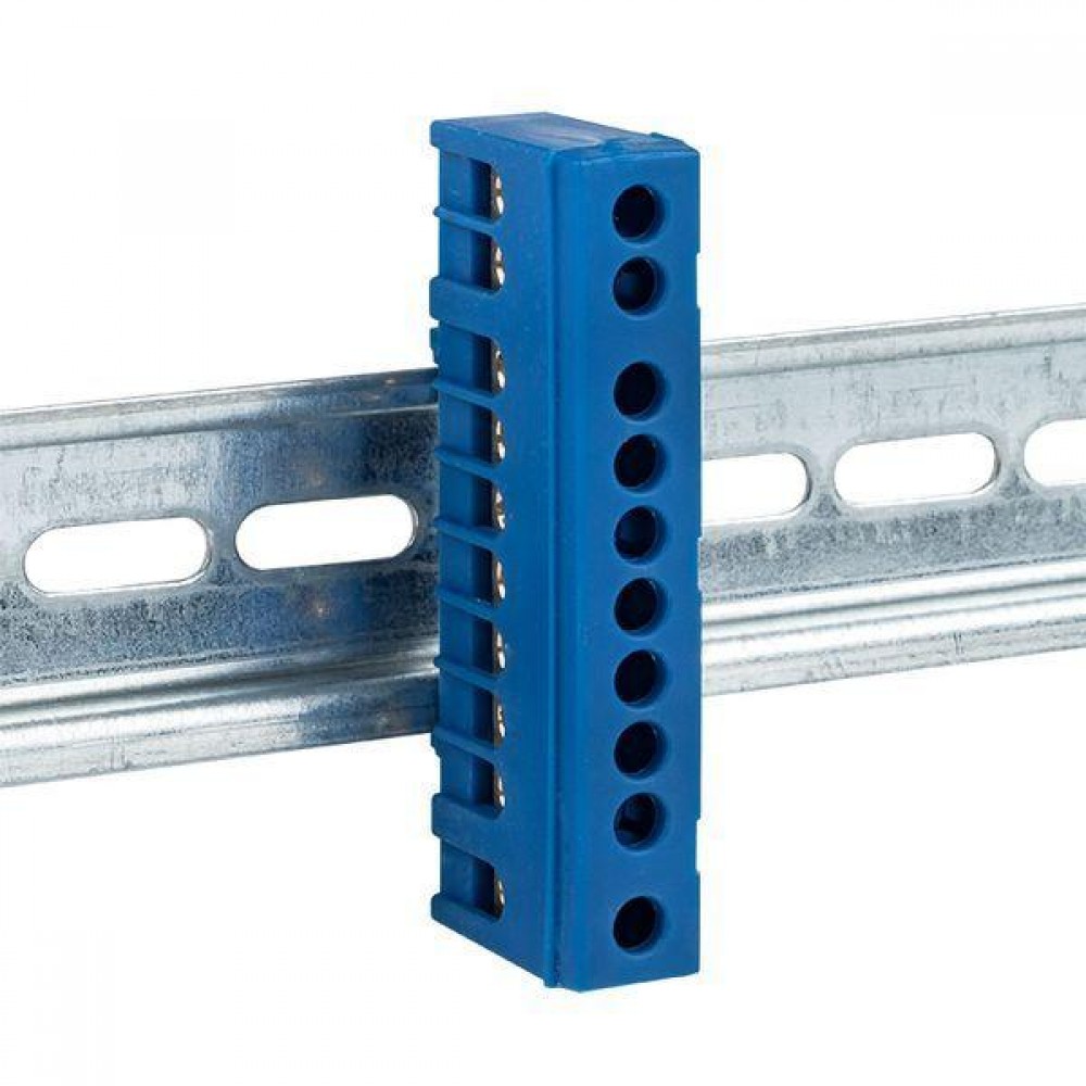 Шина нулевая N 6х9 10 отверстий синий изолированный корпус на DIN-рейку латунь PROxima EKF sn0-63-10-ib