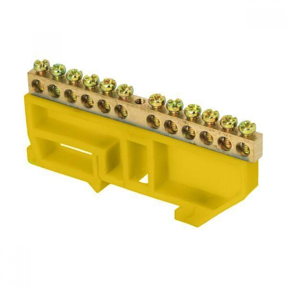 Шина нулевая N 6х9 12 отвер. латунь желт. изолятор на DIN-рейку розн. стикер PROxima EKF sn0-63-12-dz-r