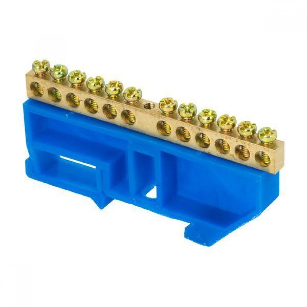 Шина нулевая N 6х9 12 отверстий синий изолятор на DIN-рейку латунь розн. стикер PROxima EKF sn0-63-12-d-r