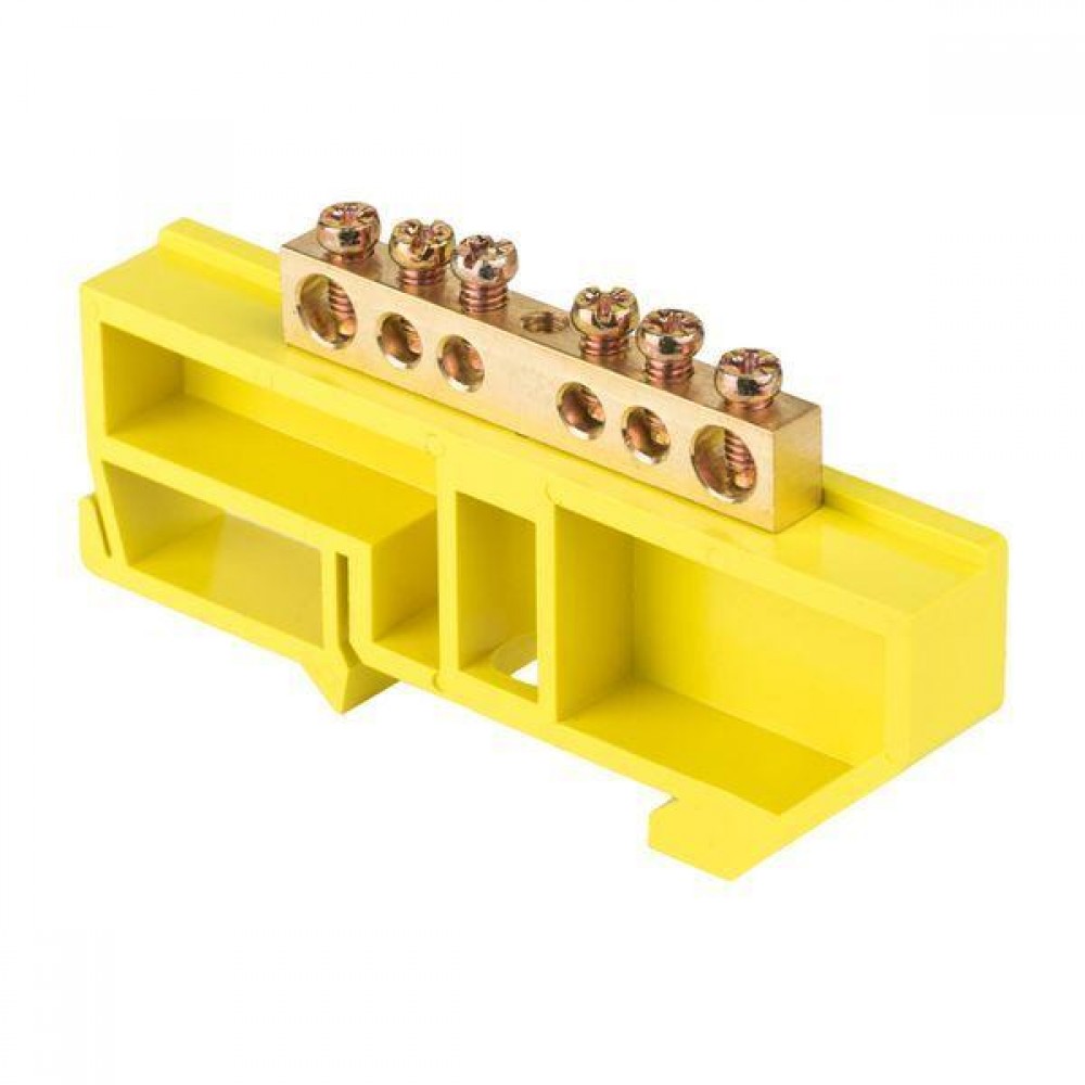 Шина нулевая N 6х9 6 отверстий желт. изолятор на DIN-рейку латунь PROxima EKF sn0-63-06-dz