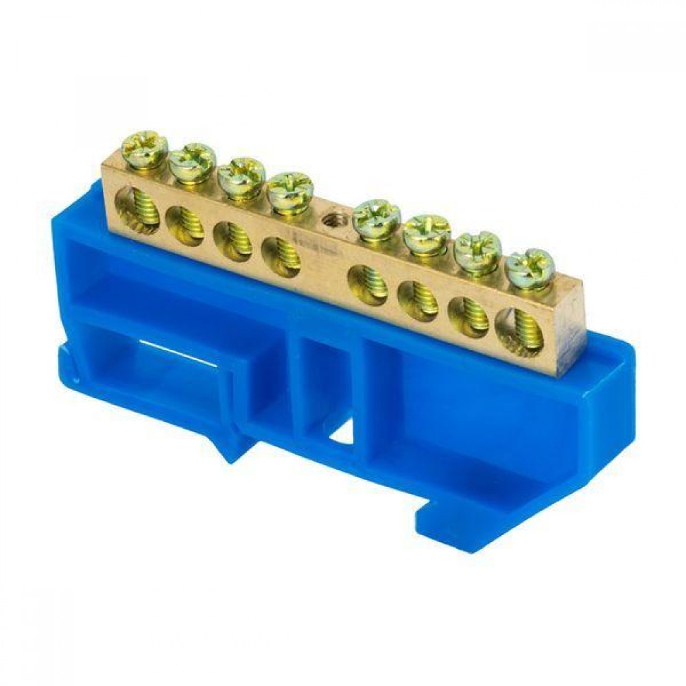 Шина нулевая N 6х9 8 отверстий синий изолятор на DIN-рейку латунь розн. стикер PROxima EKF sn0-63-08-d-r