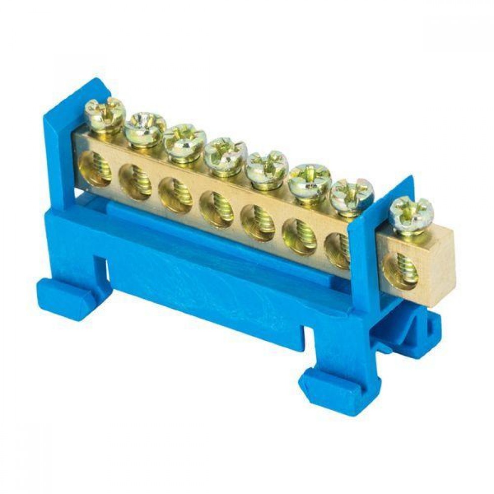 Шина нулевая N 6х9 8 отверстий синий изолятор тип "Стойка" на DIN-рейку латунь PROxima EKF sn0-63-8-sb