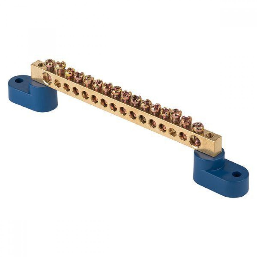 Шина нулевая N 8х12 16 отвер. латунь 2 син. угловых изолятора PROxima EKF sn0-125-16-2