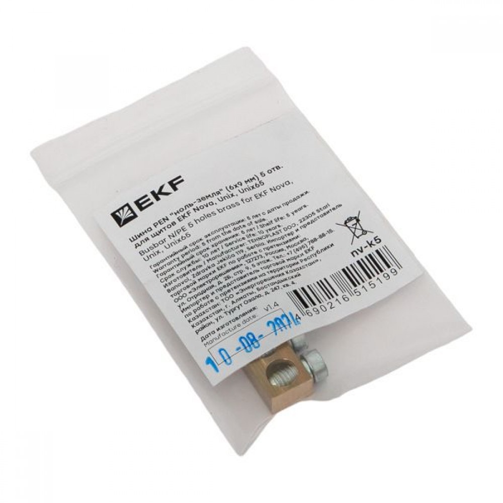 Технические характеристики Шина PEN "ноль-земля" (6х9мм) 5 отв. для щитов Nova Unix Unix65 EKF nv-k5